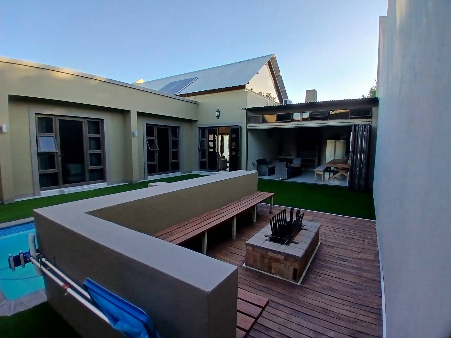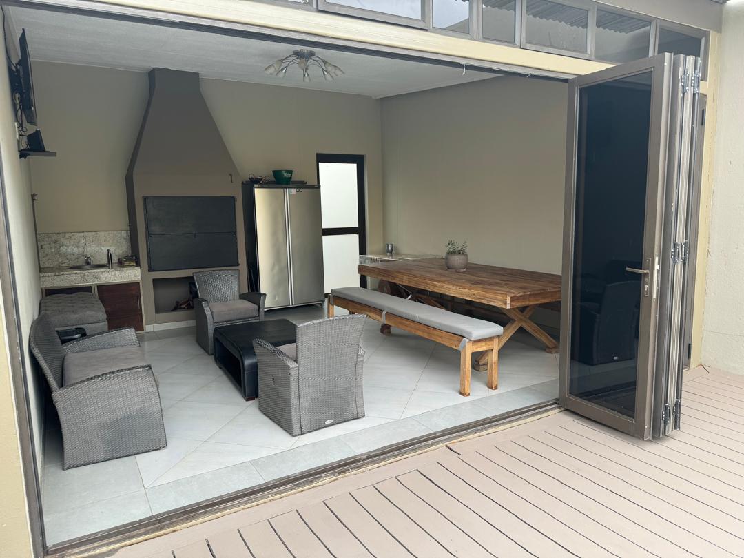 Beautiful entertainment area with underroof BBQ, walking out on a